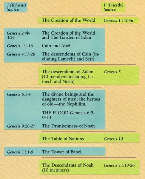 Yet what this theory does not explain is why there are two creation stories! Scripture just gives us the two creation stories, then moves onto Cain and Abel (page 7 in The Story), Noah and the flood (pages 8-11 in The Story), and the first Covenant (also called the Noahic Covenant, page 11 in The Story). Why is that? While we can take guesses, they are just that: guesses. No one really knows. All we are left with is that those who put together the Torah thought each creation story complemented the other, even if they are profound in their own right as stand alone narratives.