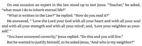 Read Luke 10:25-29 (The Story pg 337) three times: